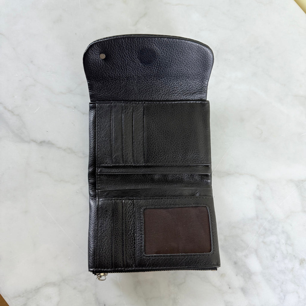 Billetera de cuero de vacuno diseñada con varios compartimientos para usarla de manera organizada con tus objetos personales.