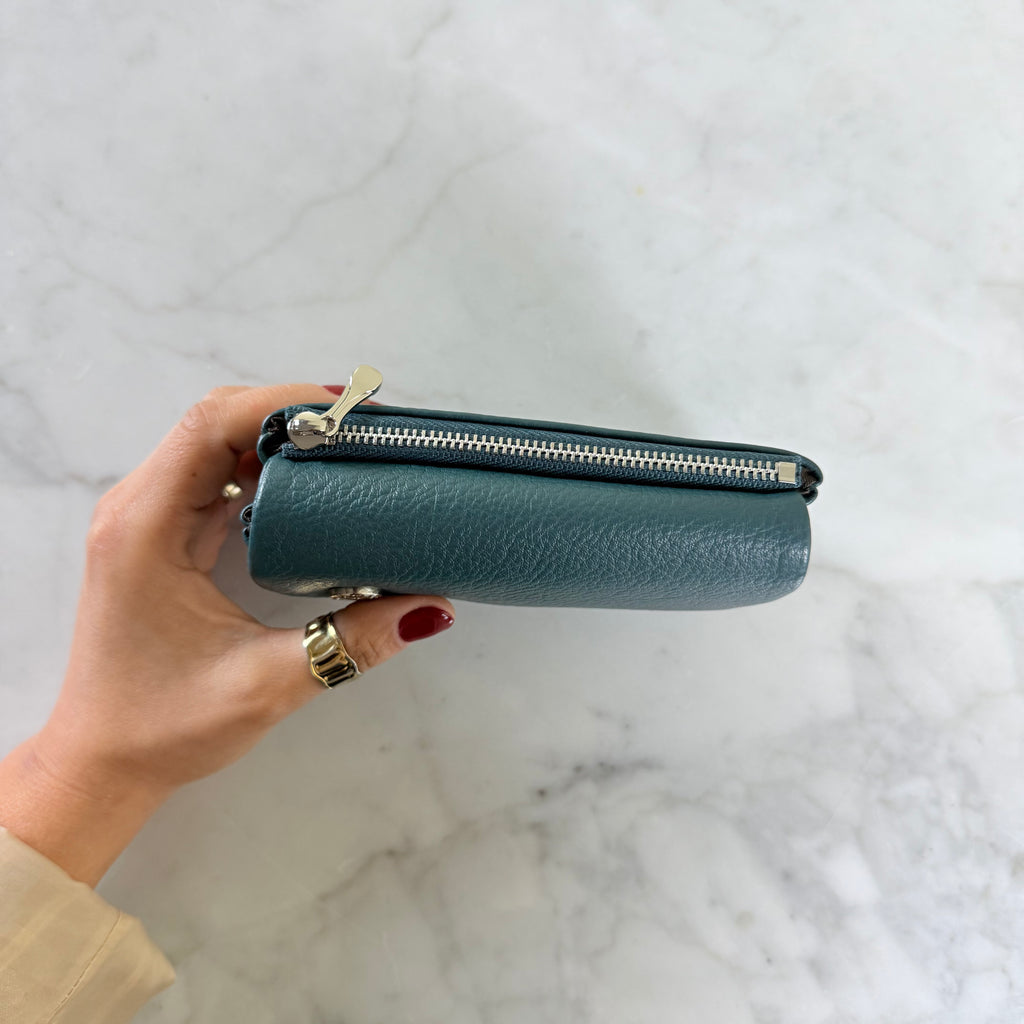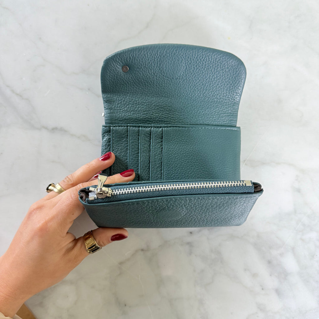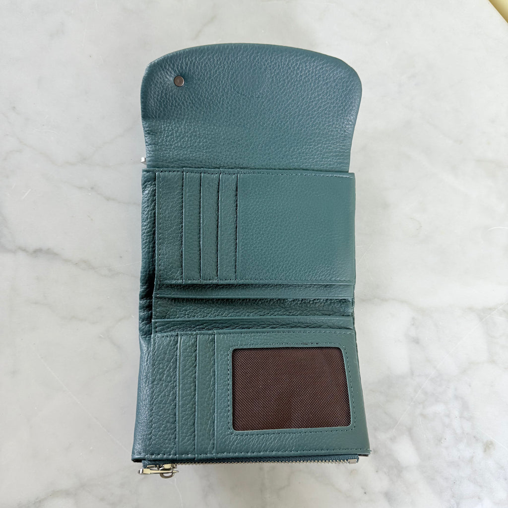 Billetera de cuero de vacuno diseñada con varios compartimientos para usarla de manera organizada con tus objetos personales.