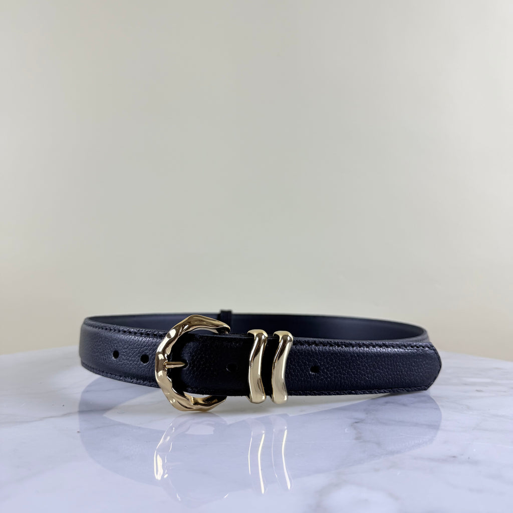 Cinturón de cuero de vacuno con hebillas doradas bañadas en oro de 18K. Fabricados en Chile.