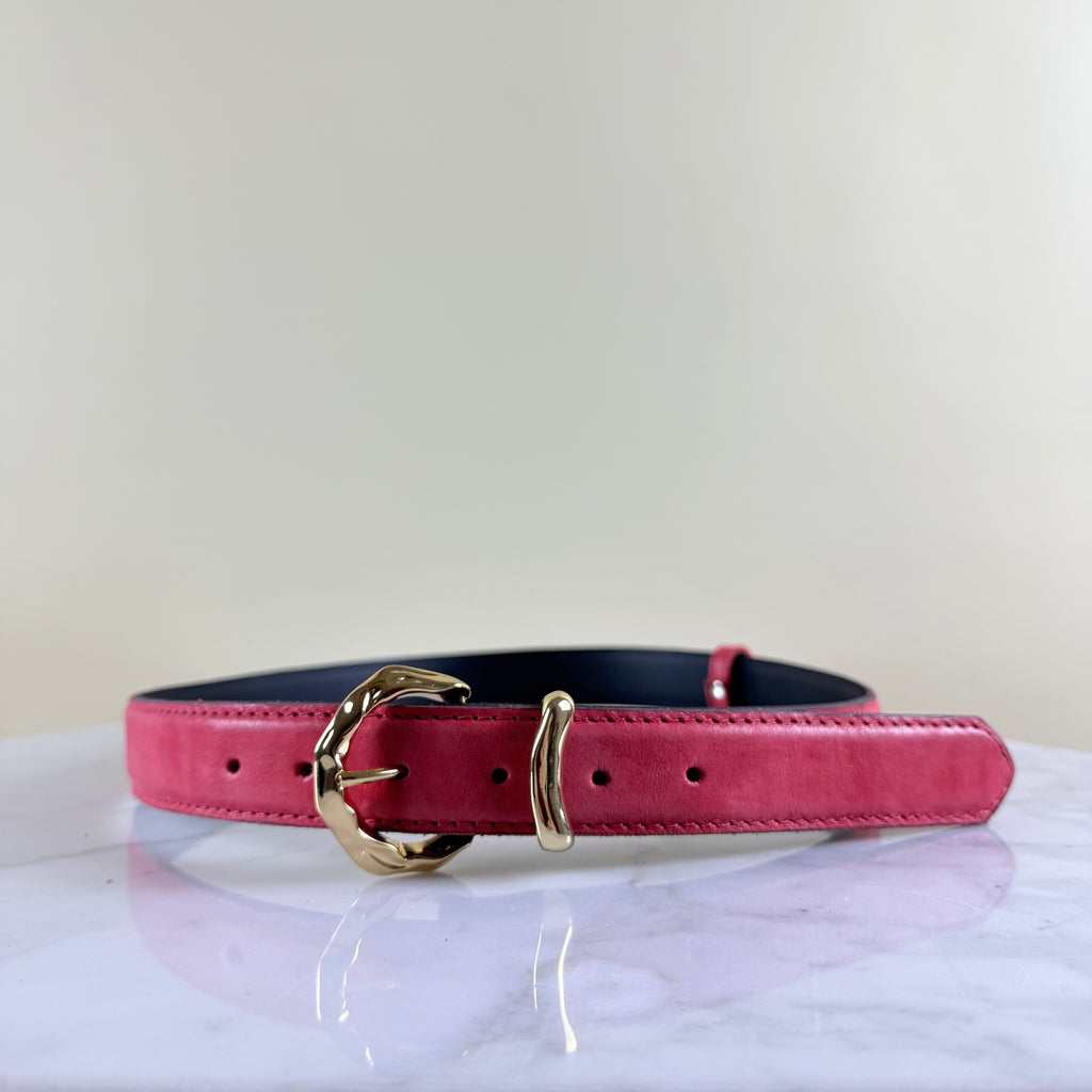 Cinturón de cuero de vacuno con hebillas doradas bañadas en oro de 18K. Fabricados en Chile.