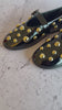 Esta bailarina de charol negro está cubierta de tachas doradas que la hacen imposible de olvidar.